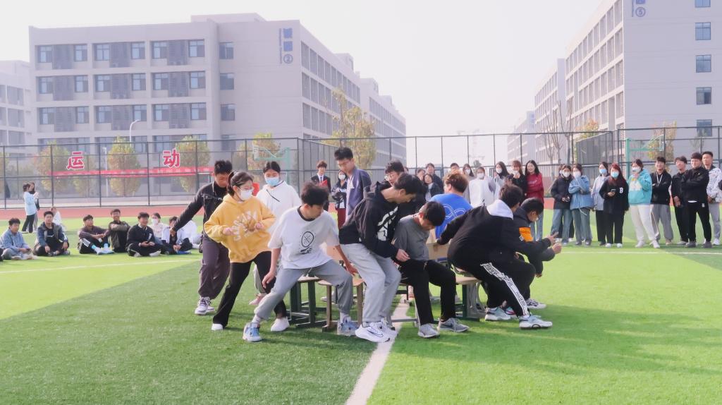 伴随着习习秋风,抢凳子游戏拉开了活动的帷幕,员工们围着凳子绕圈,听到“抢”的口令时迅速找到凳子坐下,六轮比赛后各有一名员工胜出,鼓掌声、欢笑声不绝于耳。活动如火如荼地进行着,找零钱,接力赛跑,跳大绳,三人四足考验着选手的团结与合作能力,展现了选手的激情与活力。最后的打鸭子使运动会达到了高潮,小组两两对决十分精彩。体育场上,不管是观众还是选手的兴致都十分高涨,为疫情防疫下的校园增添了活力。